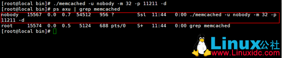 # /usr/local/memcached/bin/memcached -m 64 -p 11211 -u nobody -d