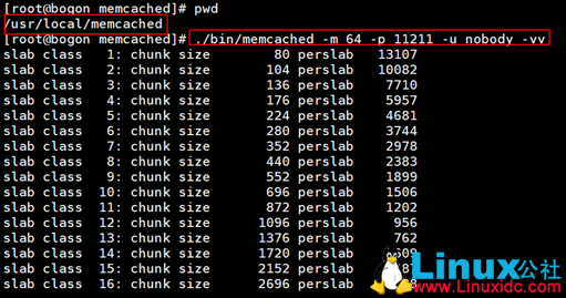 # /usr/local/memcached/bin/memcached -m 64 -p 11211 -u nobody -vv