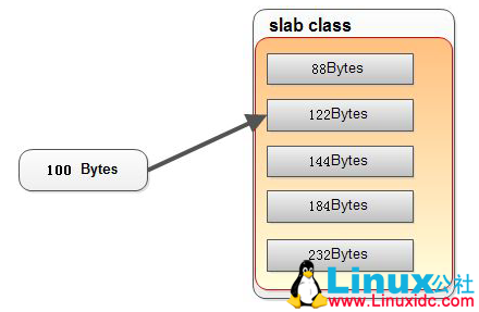 注意:如果 122Bytes 的 slab 装满了,现在有一个 100Bytes 的数据来了,存到哪里去?