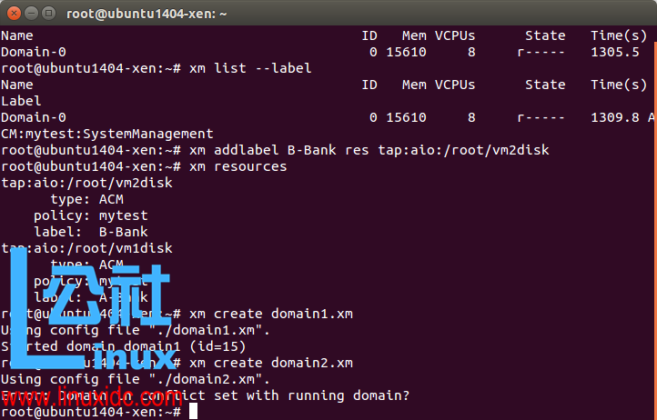 这样才干保证虚拟机 domain1 能訪问磁盘文件 vm1disk,虚拟机 domain1 能訪问磁盘文件 vm1disk,虚拟机才会创建成功,从而验证了 STE 策略。