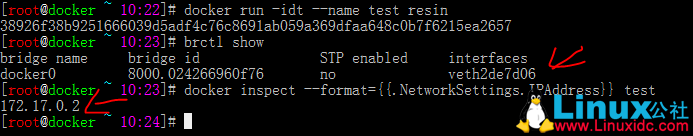 以上操作给新建的 test 容器分配了一个 172.17.0.100 的 IP 地址。