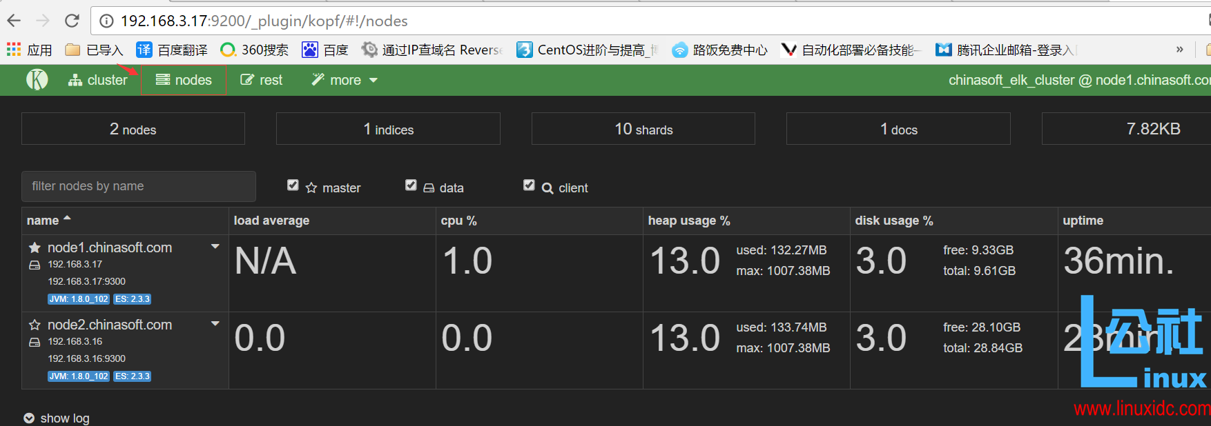 4.1 管理 node1.cinasoft.com 的 elasticsearch