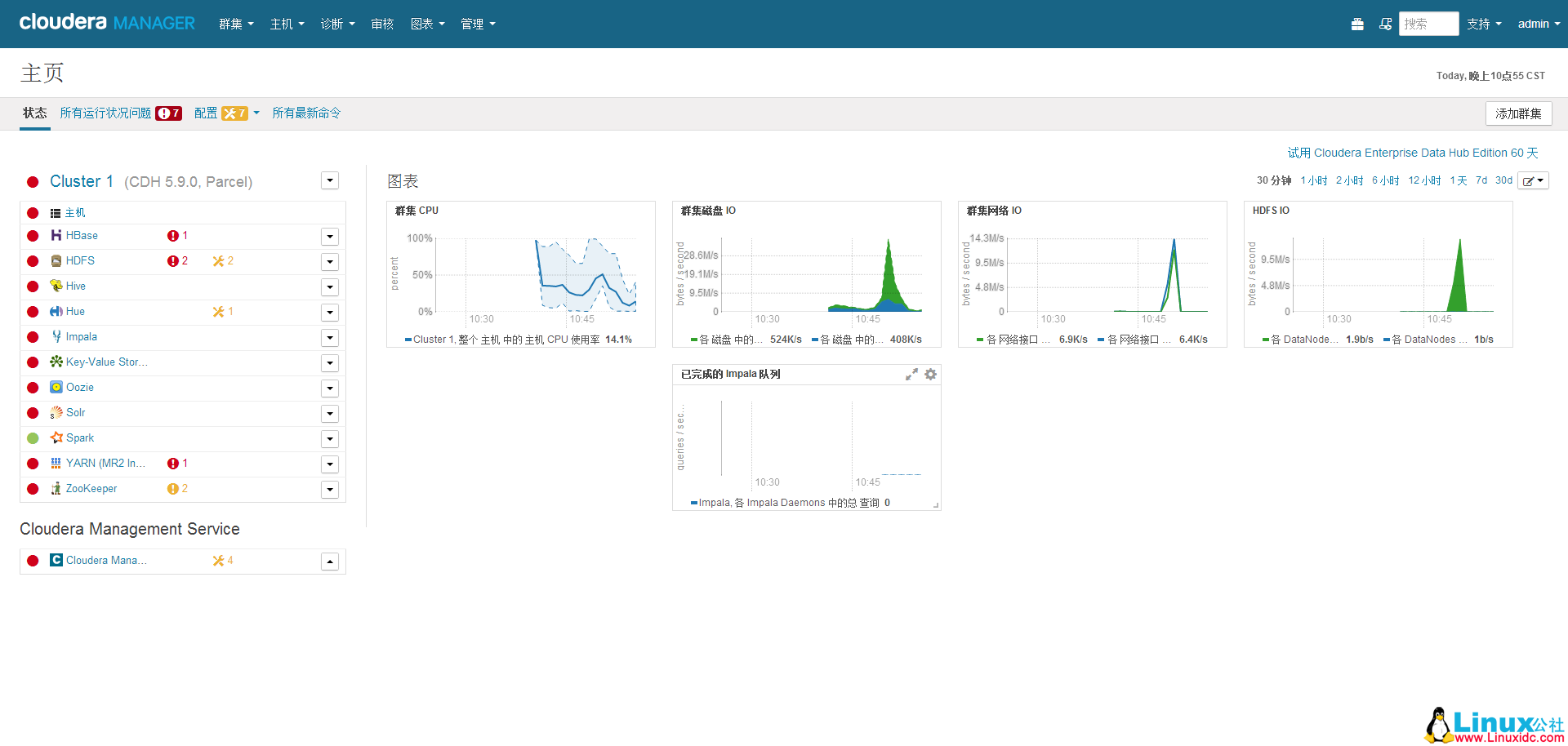 感觉 CDH 比 Apache 原生的 Hadoop 多吃好多内存,毕竟要起服务管理和监控。