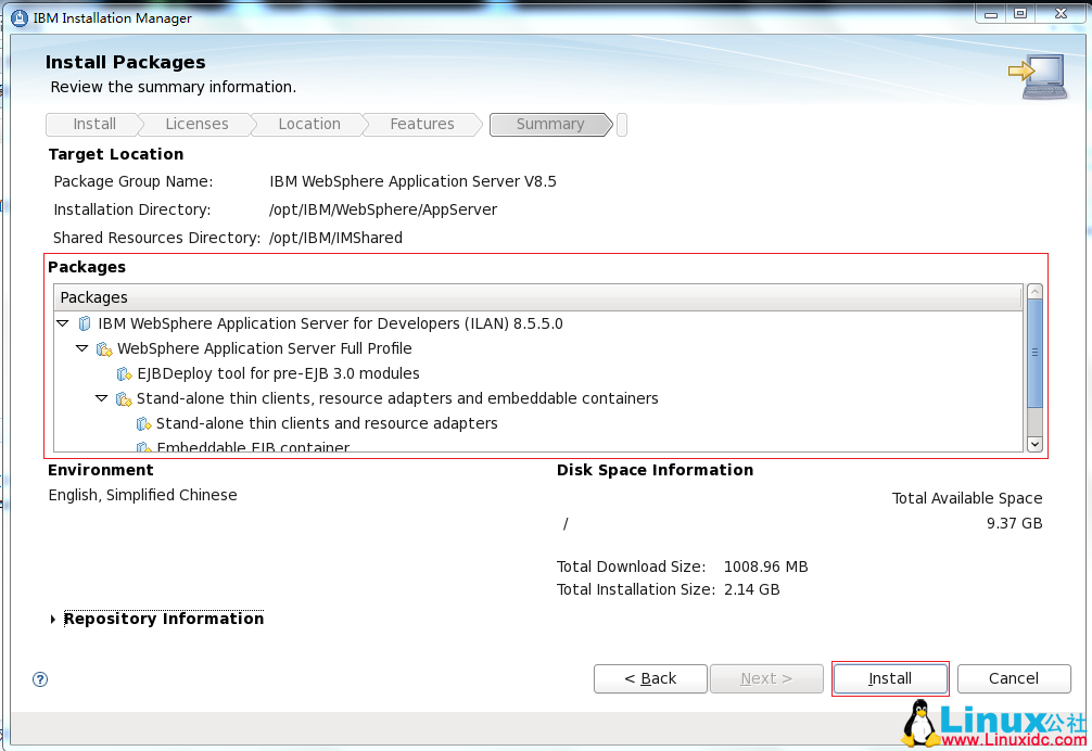 根据提示安装 IBM Installation Manager