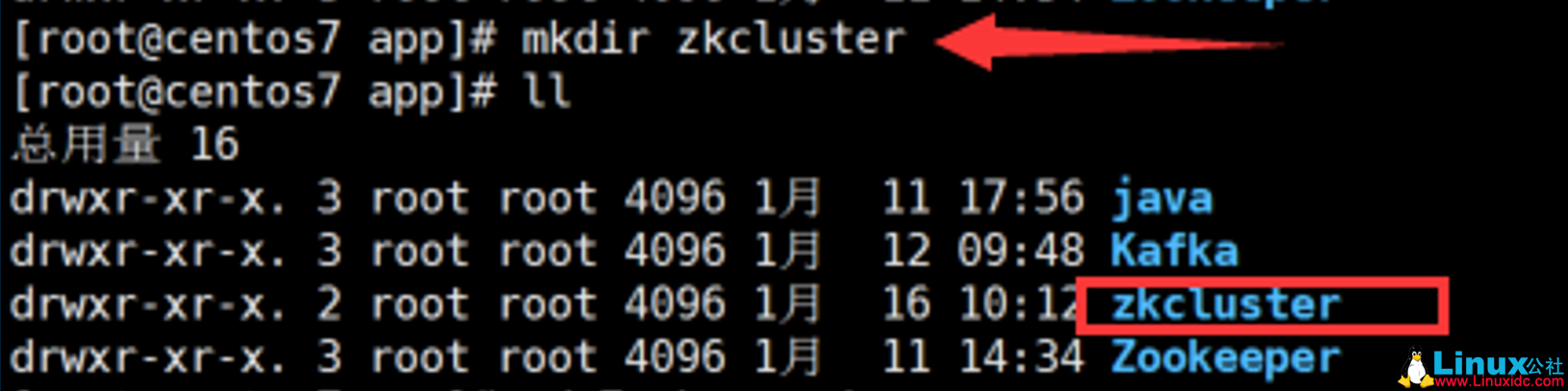 2. 在 /data/app 下创建一个叫 zkcluster 的文件夹