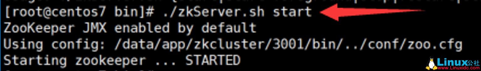 1 [root@centos7 bin]# ./zkServer.sh start