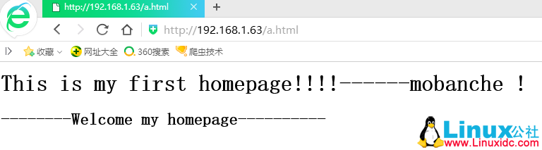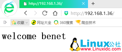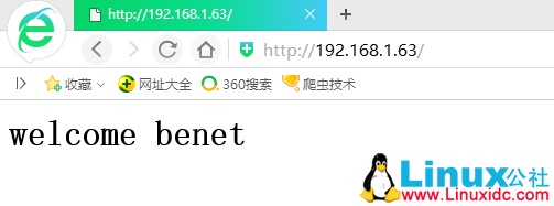 [root@linuxidc conf.d]# echo “<h1>welcome benet<h1>” > /opt/benet/index.html #给定虚拟主机输入一些信息