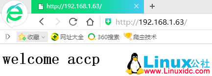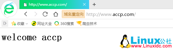 [root@linuxidc conf.d]# echo “<h1>welcome accp<h1>” > /opt/accp/index.html