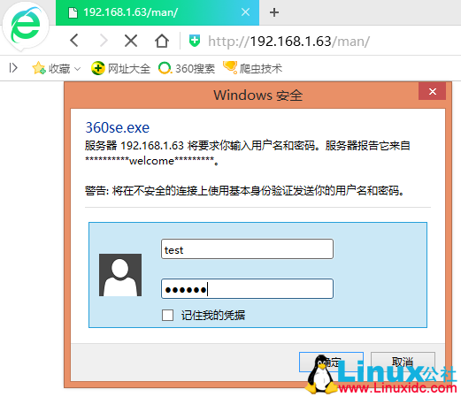 [root@linuxidc conf.d]# htpasswd -c /usr/local/apache/user test #创建用户认证的数据库