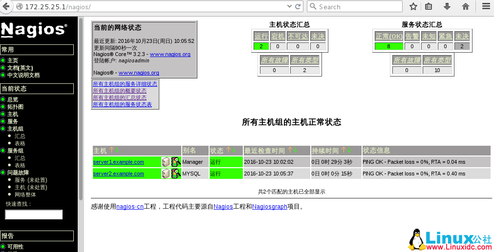 [root@server2 nagios]# useradd -u 1001 nagios #创建 nagios 用户