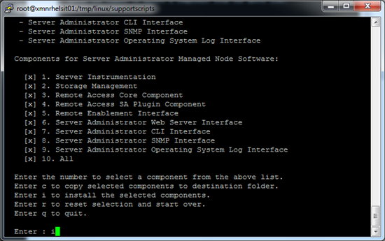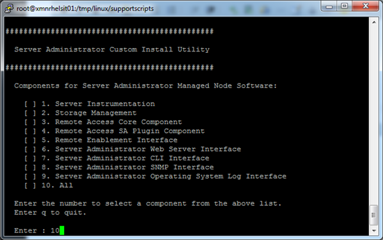 7. 在 OMSA 组件安装选项菜单里,输入“10”,并回车选择安装全部