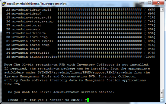 9. 静等 OMSA 安装过程完成。屏幕提示是否要启动 OMSA 服务时,输入“y”确定,并回车