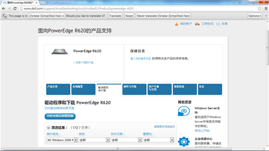 1. 访问戴尔技术支持的官方网站:http://www.dell.com/support/home/cn/zh/cnbsd1?c=cn&l=zh&s=bsd,产品类别选择“服务器、存储和联网设备”