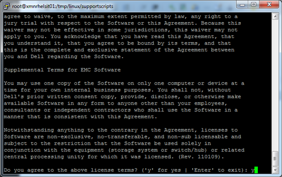 6. 按空格阅读完软件协议,并输入“y”,并回车同意