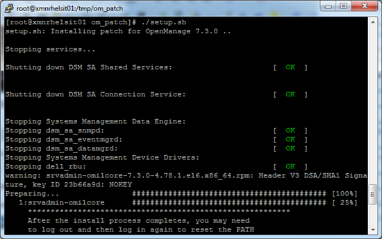 13. 在 /tmp/om_patch 目录下运行补丁安装脚本“setup.sh”。程序将自动重启 OMSA 相关服务。至此,所有步骤完成
