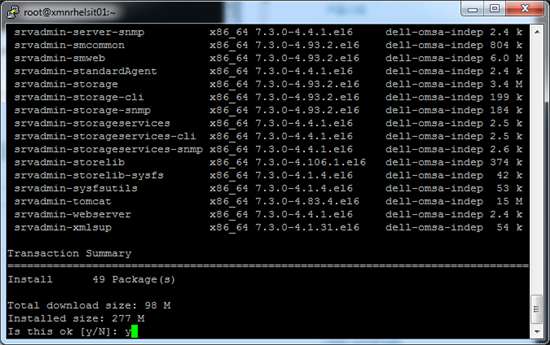 这里说明一下,如果正确配置了 yum,即使前面忘记安装 OMSA 先决包,yum 会自己检查依赖关系,在这步自动添加安装,提示确认时,选“y”并回车