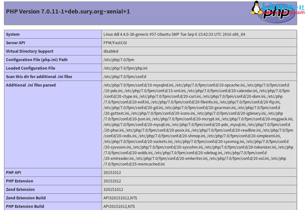 sudo apt install php-mysql php-curl php-mcrypt php-gd php-memcached php-redis # 此方式安装会同时在多个版本下面分别安装 # 还有一些库 sudo apt install php7.0 # 按 tab 可以显示如下一些库 php7.0 php7.0-fpm php7.0-mysql php7.0-sqlite3php7.0-bcmath php7.0-gd php7.0-odbc php7.0-sybasephp7.0-bz2 php7.0-gmp php7.0-opcache php7.0-tidyphp7.0-cgi php7.0-imap php7.0-pgsql php7.0-xmlphp7.0-cli php7.0-interbase php7.0-phpdbg php7.0-xmlrpcphp7.0-common php7.0-intl php7.0-pspell php7.0-xslphp7.0-curl php7.0-json php7.0-readline php7.0-zipphp7.0-dba php7.0-ldap php7.0-recode php7.0-dev php7.0-mbstring php7.0-snmp php7.0-enchant php7.0-mcrypt php7.0-soap # 这个 php ppa 的源提供了几个版本的 php 5.5 5.6 7.0 7.1 也就是说我们可以安装多个版本共存,这个有兴趣的同学可以折腾折腾,反正是开发环境。LNMP 环境搭建 (Discuz 论坛) http://www.linuxidc.com/Linux/2016-03/129334.htm