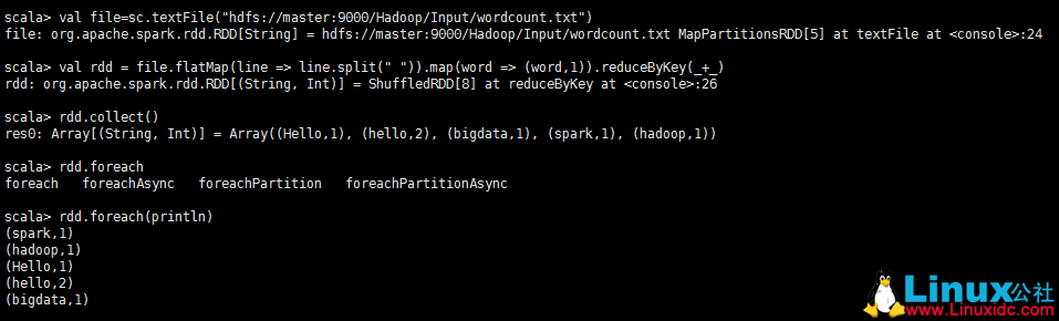 val file=sc.textFile("hdfs://master:9000/Hadoop/Input/wordcount.txt")
