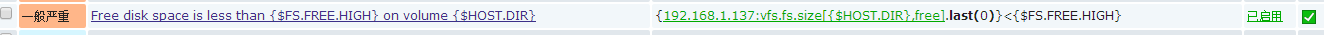 有个开发同事要求,需要监控系统中的某一路径的磁盘剩余值(非磁盘剩余百分比),当剩余空间不足某个数量时产生报警。具体操作如下: