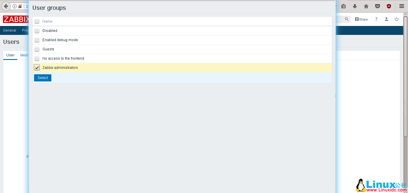 请注意,在 Zabbix 中,主机的访问权限分配给用户组,而不是单个用户。