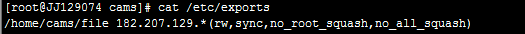 然后输入 /home/cams/file 182.207.129.* (rw,sync,no_root_squash,no_all_squash)