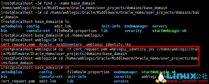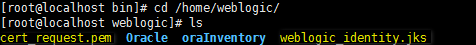 四、回车后,在 /home/weblogic 下你会发现生成了两个文件,将生成的 weblogic_identity.jks 和 cert_request.pem 文件拷贝到 weblogic 的 base_domain 文件夹下,