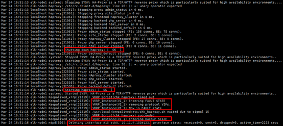- 因为 keepalived 配置文件中定义了拉起 haproxy 服务的脚本,可以看到 1s 的时间内,haproxy 服务又开始运行了。