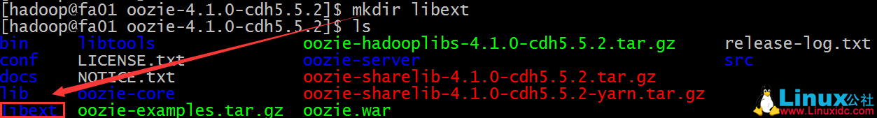 [hadoop@fa01 oozie-4.1.0-cdh5.5.2]$ mkdir libext