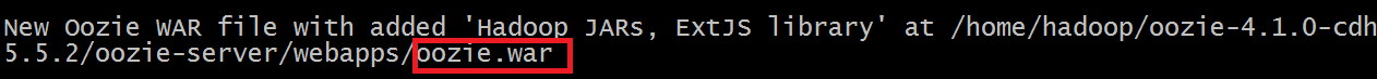 [hadoop@fa01 oozie-4.1.0-cdh5.5.2]$ bin/addtowar.sh -inputwar $OOZIE_HOME/oozie.war -outputwar $OOZIE_HOME/oozie-server/webapps/oozie.war -hadoop 2.6.0 $HADOOP_HOME -extjs /home/hadoop/ExtJS-2.2.zip