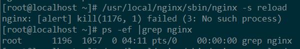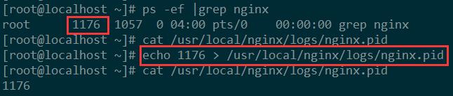 Step3. 将主进程号添加到 /usr/local/nginx/logs/nginx.pid 文件后,居然报错 nginx: [alert] kill(1176, 1) failed (3: No such process) 1176 进程失败,没有此进程,看来被杀掉了