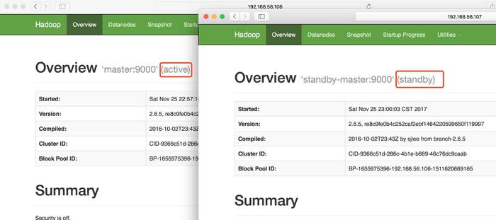 在游览器输入 http://192.168.56.106:50070/ 和 http://192.168.56.107:50070/