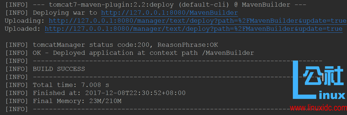 注意点 6:maven 指令是 tomcat7:deploy 别点错了。