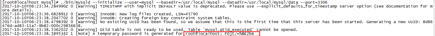 # ./bin/mysqld --initialize --user=mysql --basedir=/usr/local/mysql --datadir=/usr/local/mysql/data --port=3306