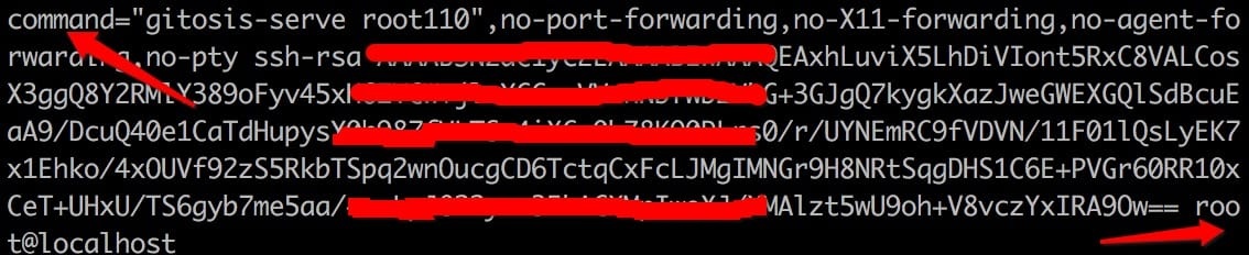 如果不小心将有数字的 pub 传入服务端仓库,导致仓库不能使用。可以登录仓库所在的服务器,git 用户下,编辑 /home/git/.ssh/authorized_keys,删除对应的有数字的秘钥所在行就可以恢复。