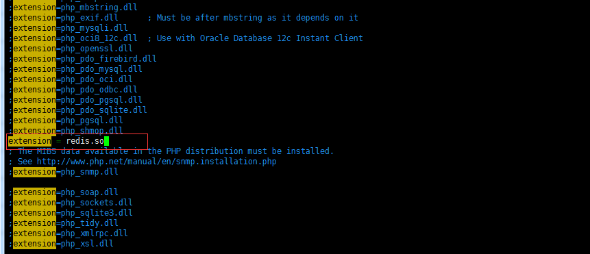 [root@linuxmi phpredis-develop]# vim /usr/local/php7/etc/php.ini // 增加一行配置(可以放到文件最后一行)定义如下:extension = redis.so