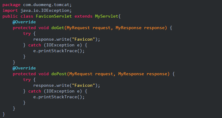 因为浏览器在请求的时候还会请求浏览器上面显示的 favicon.ico,所以要编写一个相关的 servlet 来处理请求,代码如下。