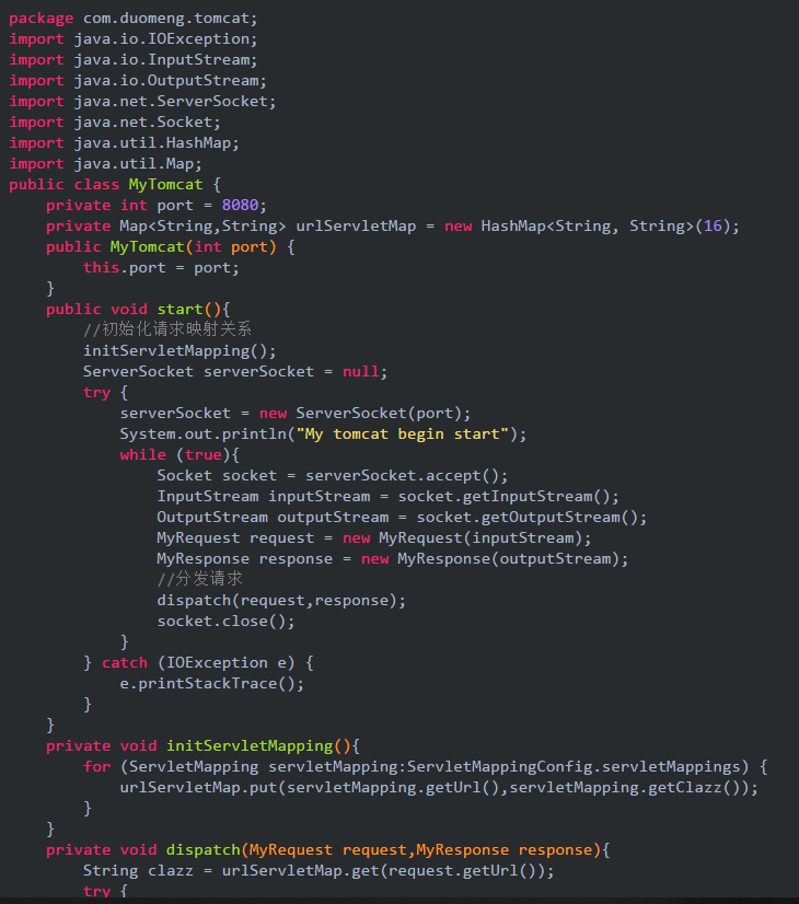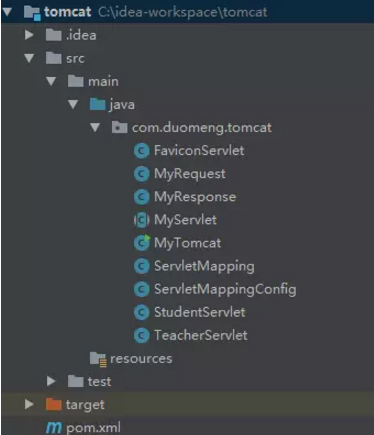 实际的 tomcat 要比这复杂的多,这里只是简单了实现了 tomcat 的一个处理逻辑的 demo,比如 tomcat 多端口的配置,数据源的配置,热部署等相关功能,当然只要了解了主要思想,相信全部深入的了解也就没有那么难了。