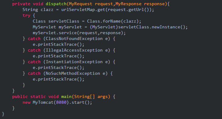 接下来就是真正的主角登场了,那就是对于请求做分发处理的相关逻辑了,具体代码如下所示。