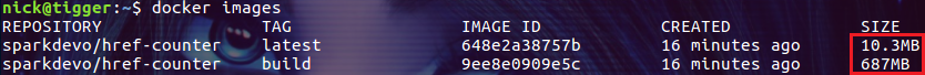 $ docker build –no-cache -t sparkdevo/href-counter:multi . -f Dockerfile.multi