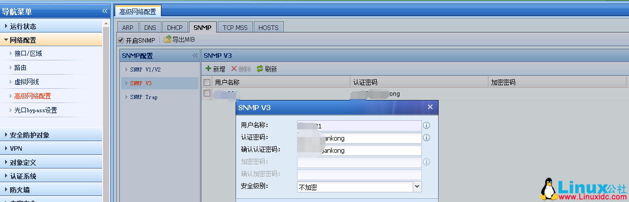 snmp v3 安全级别有三种,分别为 noAuthNoPriv(不认证也不加密)、authNoPriv(认证但是不加密)、authPriv(既认证又加密)