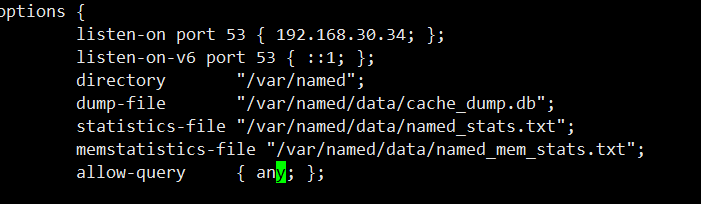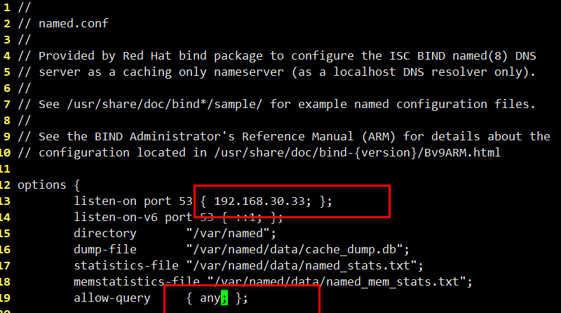 [root@localhost ~]# vi /etc/named.conf