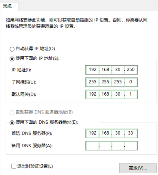 我使用的这台主机是 192.168.30.33 下面来修改