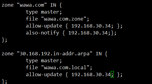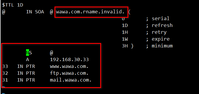 [root@localhost named]# vi wawa.com.zone