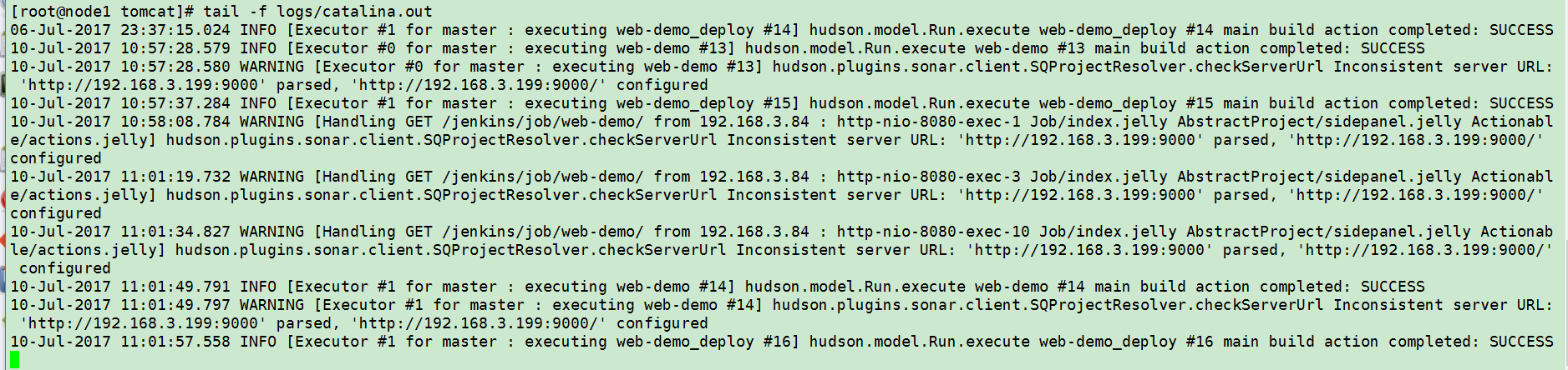 [root@node1 tomcat]# tail -f /usr/local/tomcat/logs/catalina.out