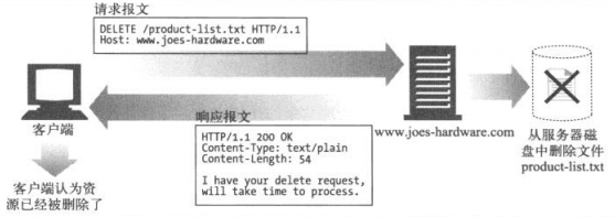 DELETE 方法所做的事情就是请求服务器删除请求 URL 所指定的资源。但是客户端应用程序无法保证删除操作一定会被执行。因为 HTTP 规范允许服务器在不通知客户端的情况下撤销请求。