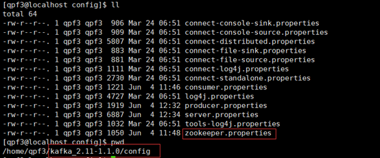 (2)、kafka 需要安装 zookee 使用,但 kafka 集成 zookeeper, 在单机搭建时可直接使用。使用需配置 kafka_2.11-1.1.0/config 下的“zookeeper.properties”。