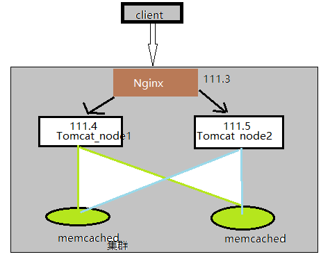 memcached 是一套分布式的快取系统,相关数据都是在内存里,一旦服务重启或者死机,则数据必然丢失;memcached 是键值对存储形式;在以下试验中,每个 session 都会在这两台 memcached 上进行分布式存储,有了冗余性,即使一台出问题也不影响工作。同样只适用于中小型架构。
