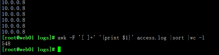 awk ‘{print $1}’ access.log|sort | uniq -c |wc -l
