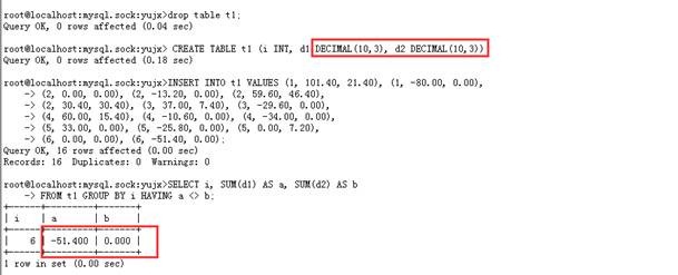 如果将字段 d1 和 d2 改成 DECIMAL 类型,将不会存在此问题。如下: