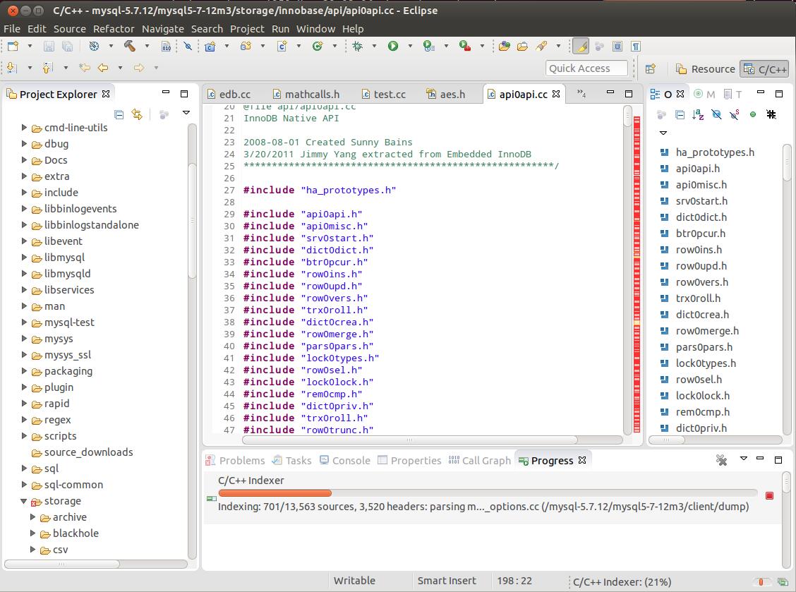 注意此处的后面的路径是你的源码放置路径。此步骤按照《mysql 技术内部——InnoDB 存储引擎》书上的来做会出现错误。